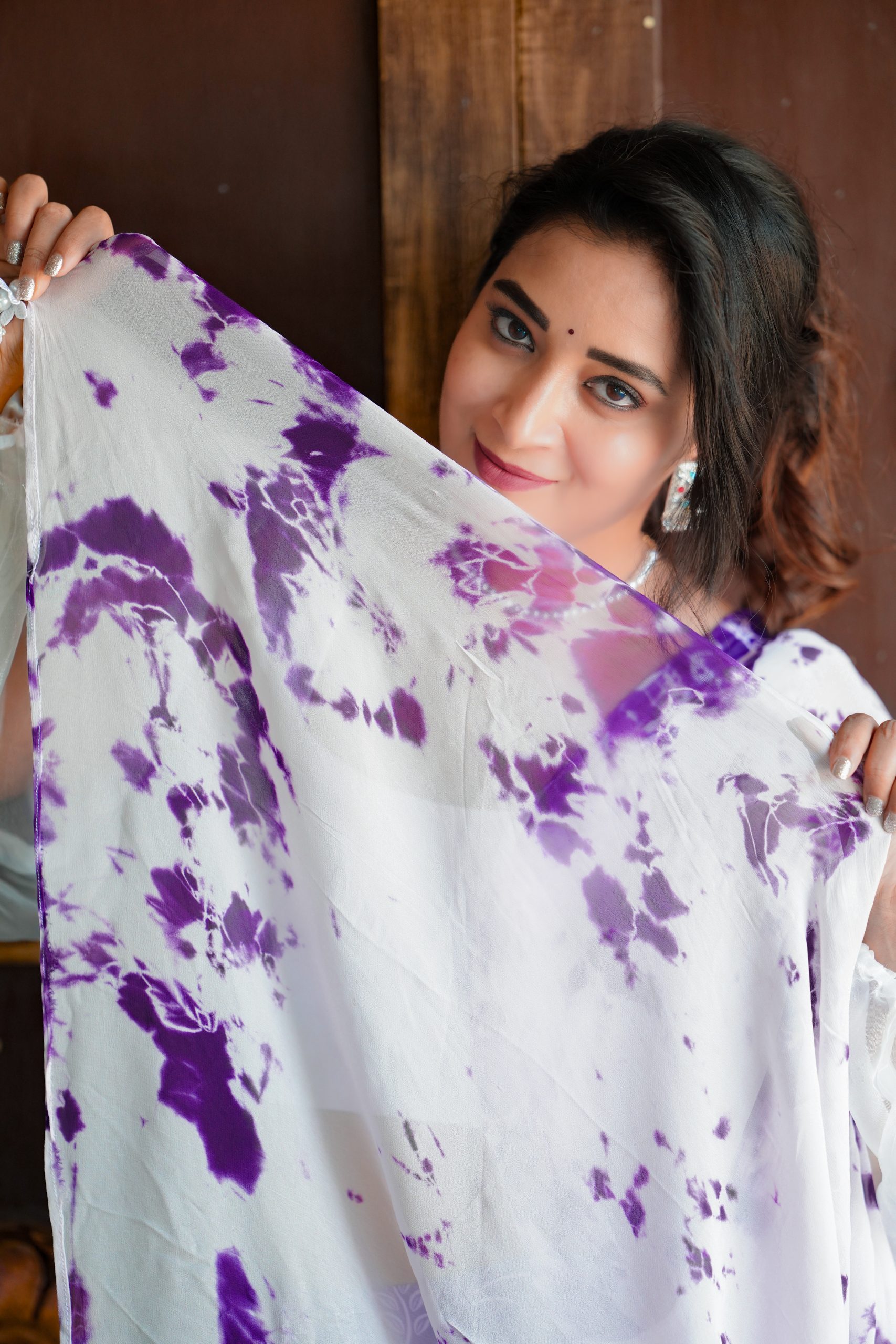 This elegant blue georgette dress exudes subtle charm with its delicate maggam embroidery accents. Paired with a beautifully dyed chinnon dupatta in soft hues, the ensemble blends grace with modern flair. Lightweight and flowy, it’s a perfect choice for festive occasions, family gatherings, or semi-formal celebrations.