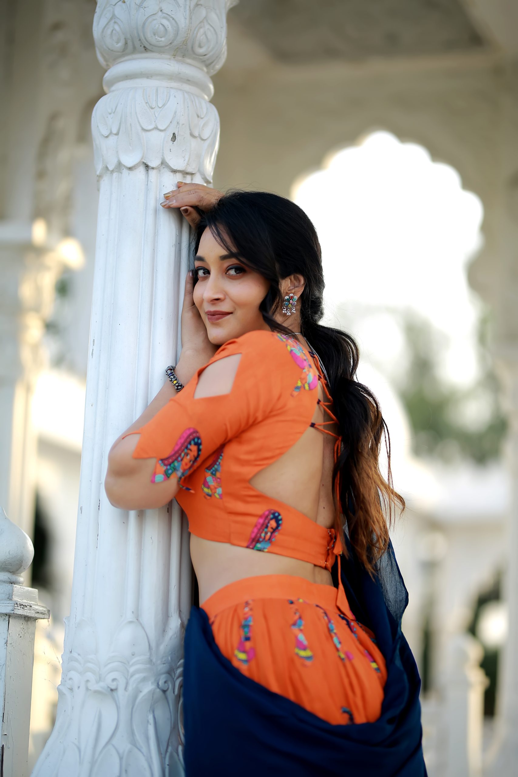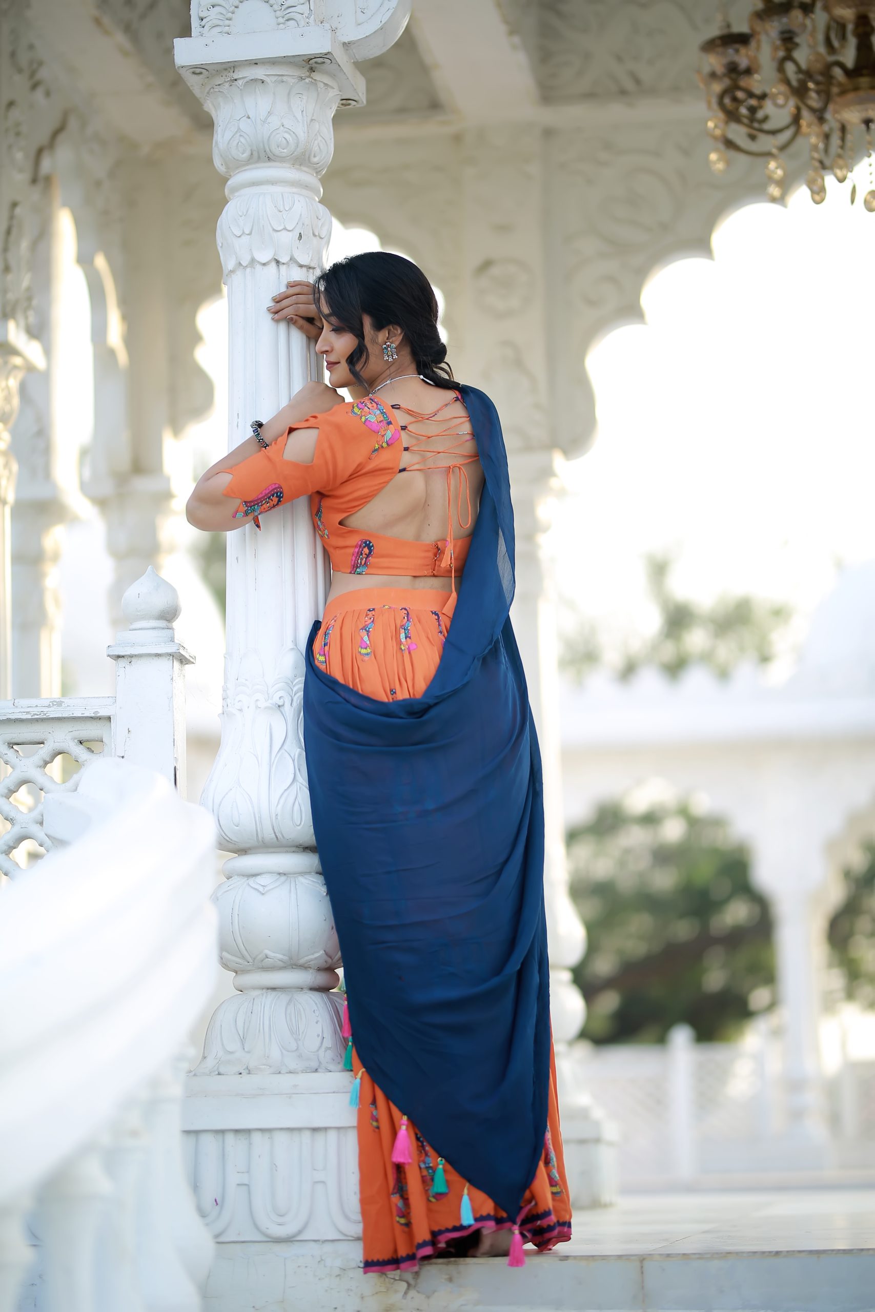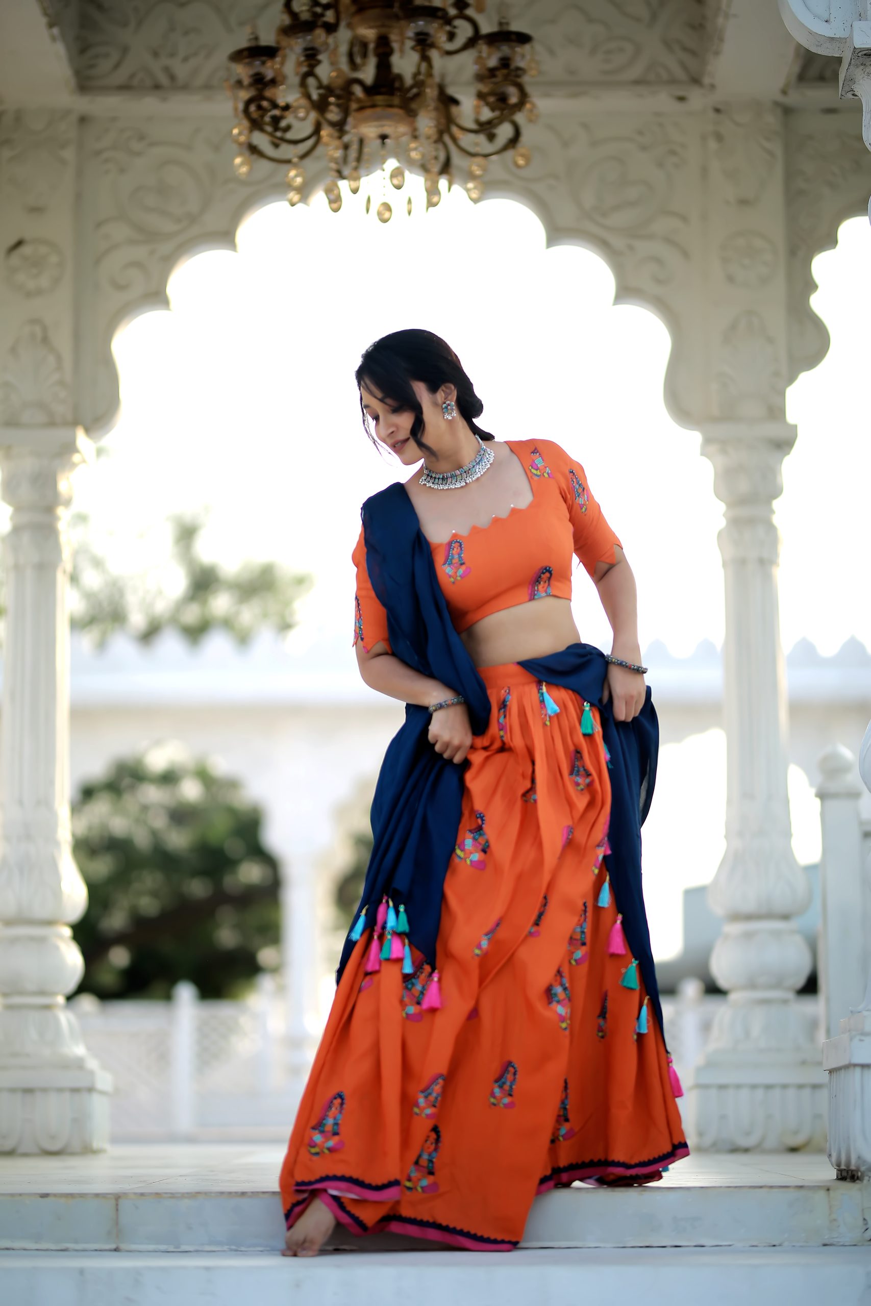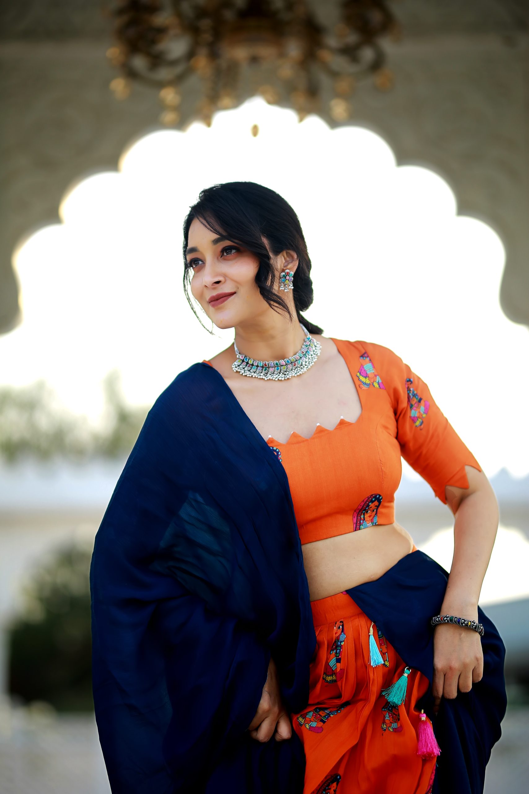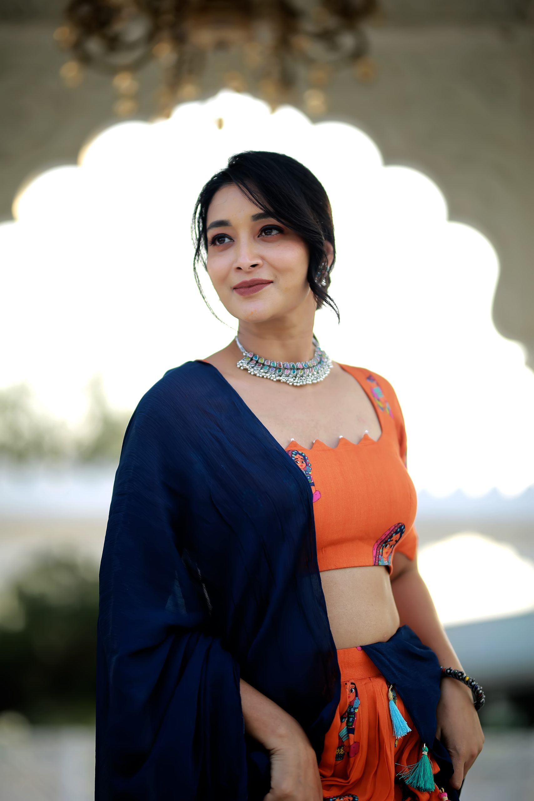 This muslin printed dress is a graceful blend of tradition and modern charm, perfect for festive occasions or cultural gatherings. Paired with a beautifully tailored blouse, the outfit strikes a balance between sophistication and comfort. Completing the look is a soft chinon dupatta, which drapes effortlessly and adds a layer of fluidity and finesse. Together, the combination creates a timeless and radiant appearance that celebrates both heritage and style.