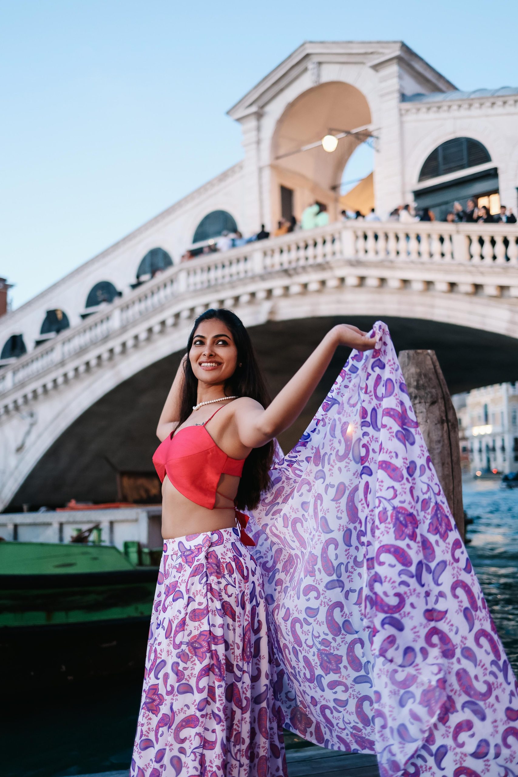 This elegant georgette lehenga features exquisite paisley print patterns that exude timeless charm. Paired with a bold contrast blouse and a matching printed dupatta, the ensemble beautifully blends tradition with contemporary flair. Lightweight and flowy, it’s ideal for festive celebrations, weddings, and special occasions, offering both comfort and sophistication.