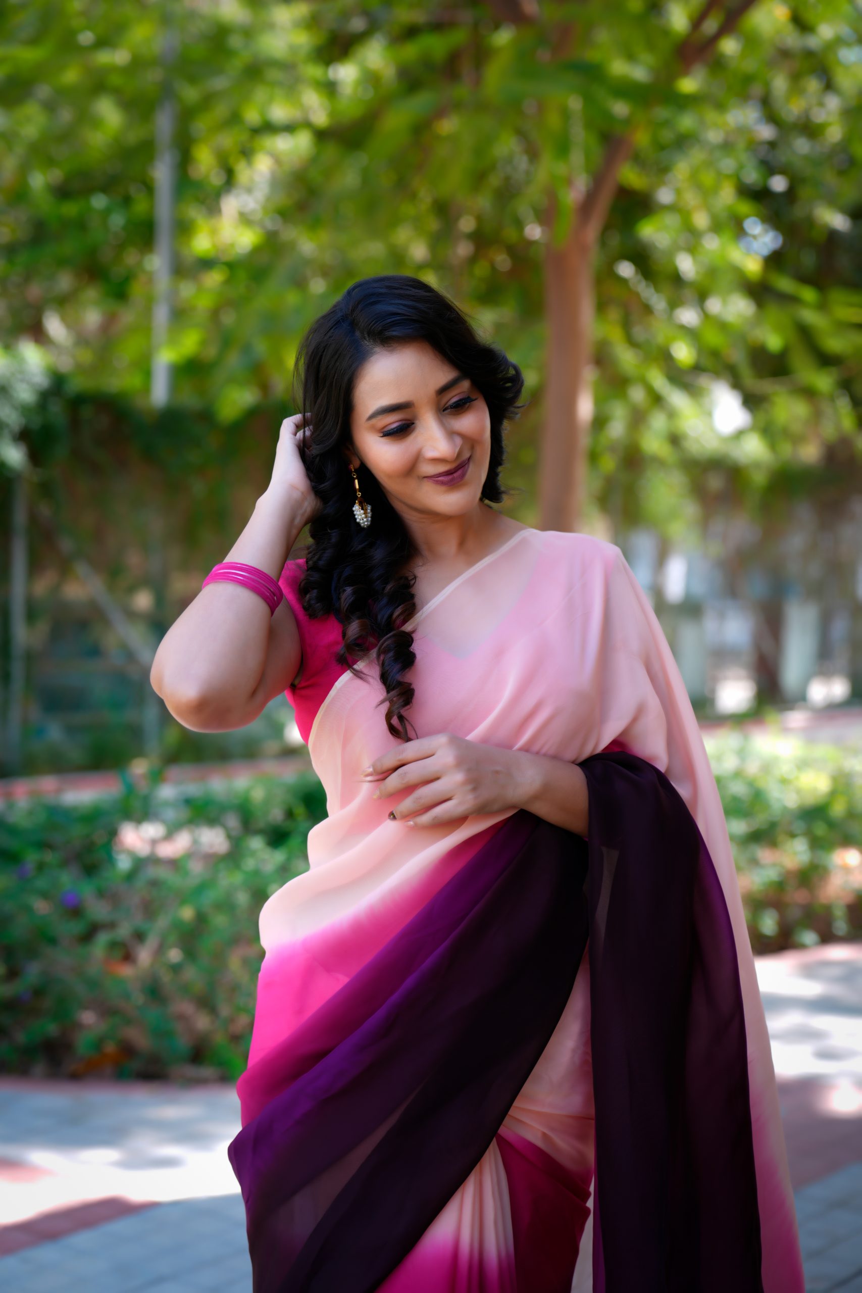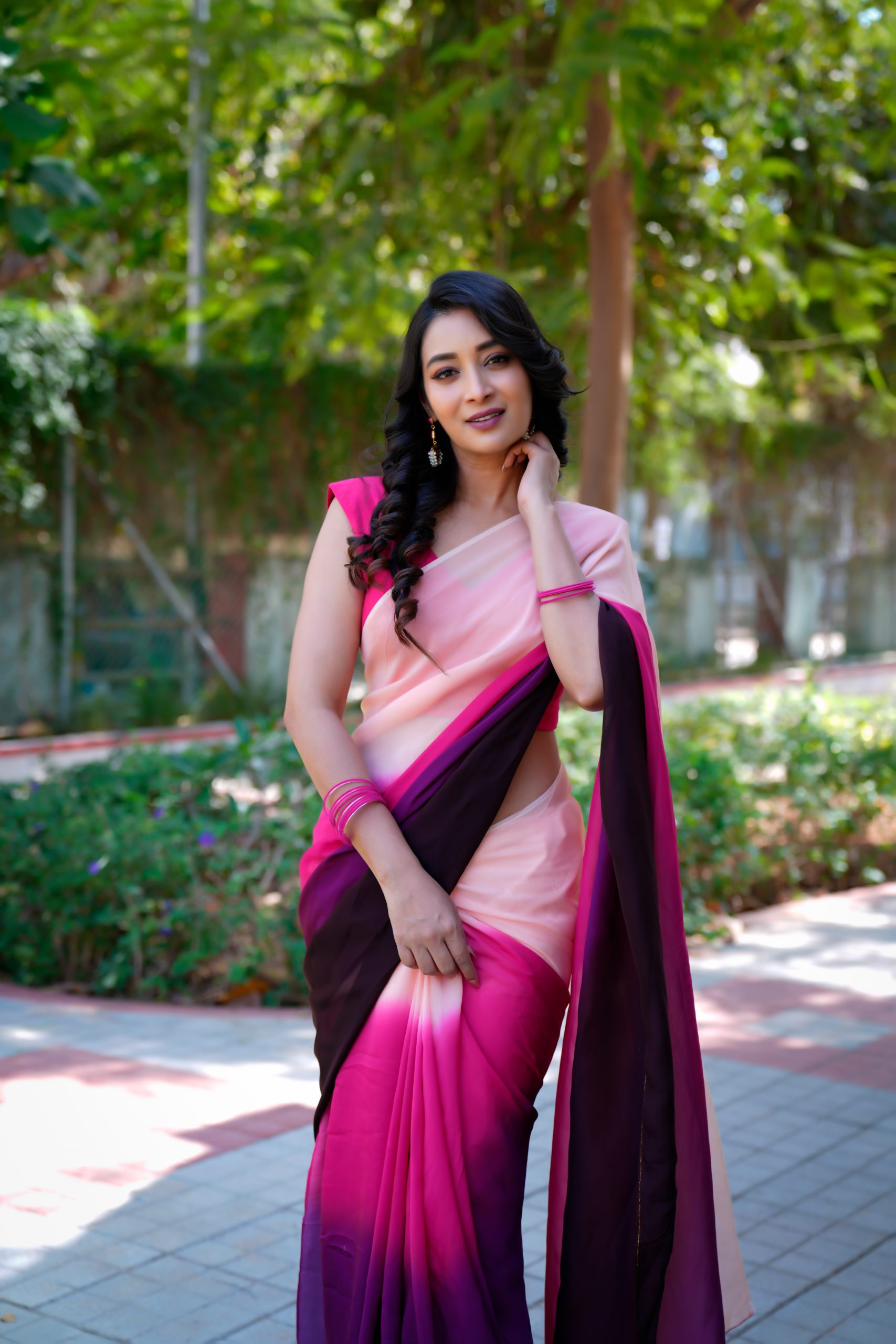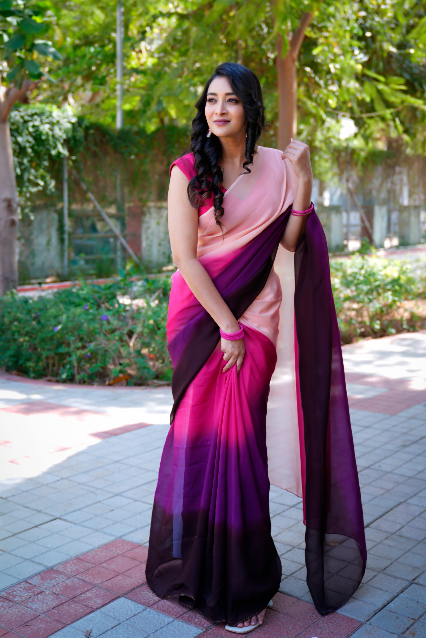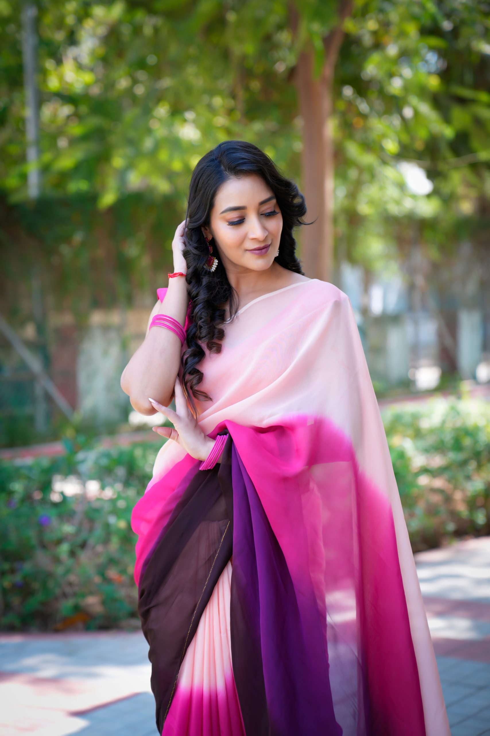 This exquisite pure organza saree showcases a stunning double-shaded dye pattern that beautifully blends deep and soft hues. The fabric’s sheer elegance and light texture add a charming touch, making it perfect for festive occasions, parties, or elegant gatherings — a true statement of refined style.