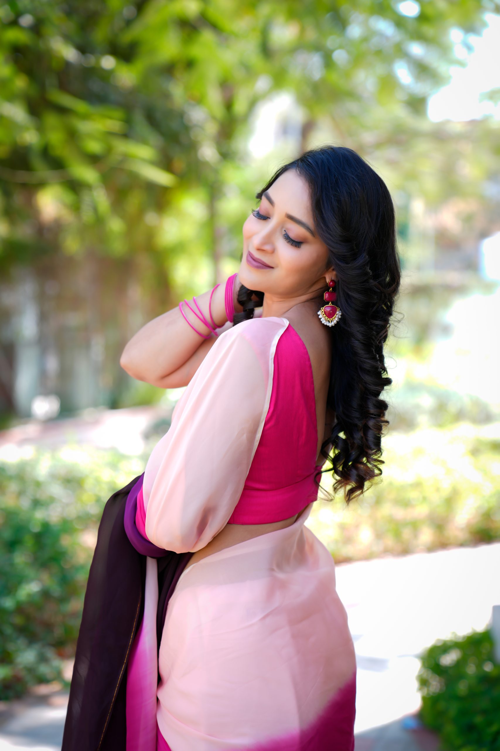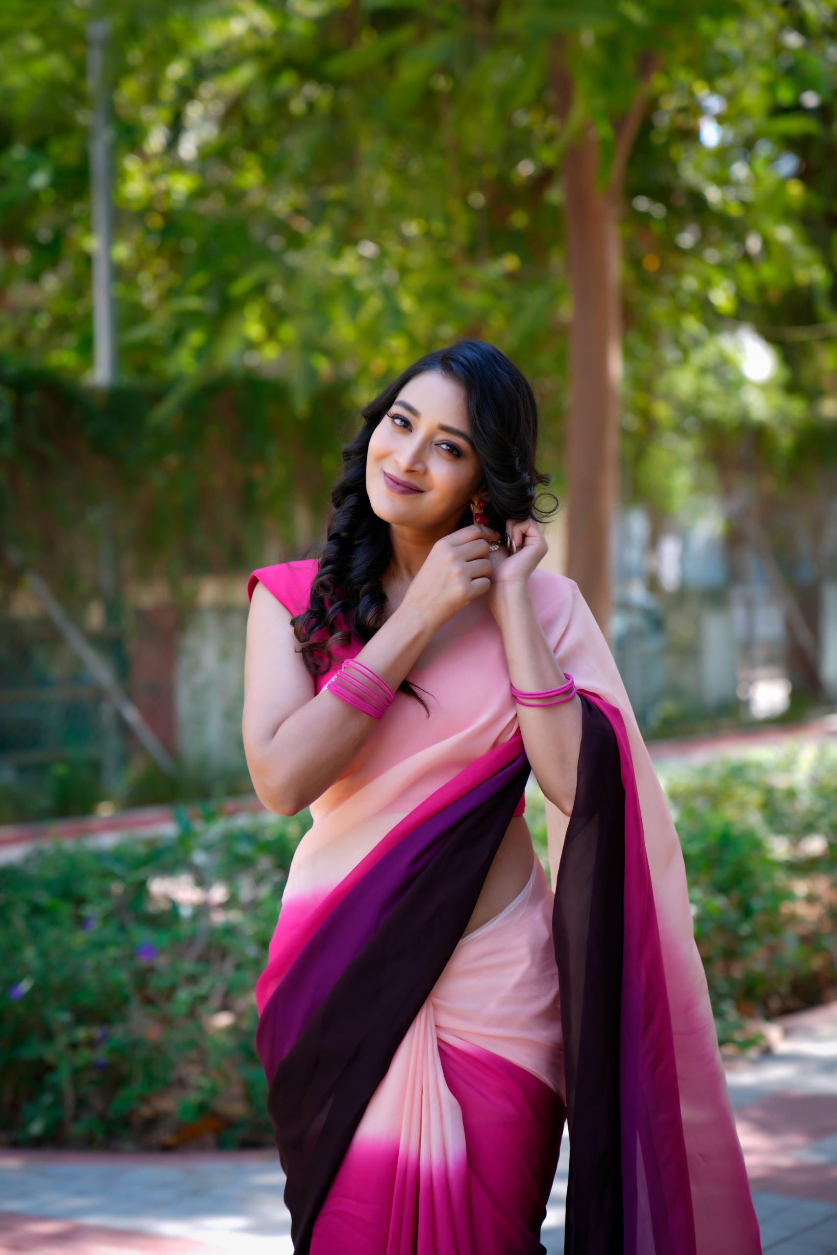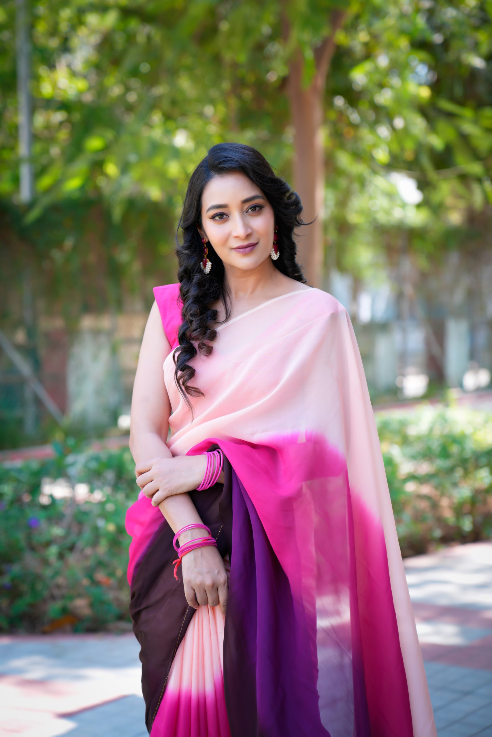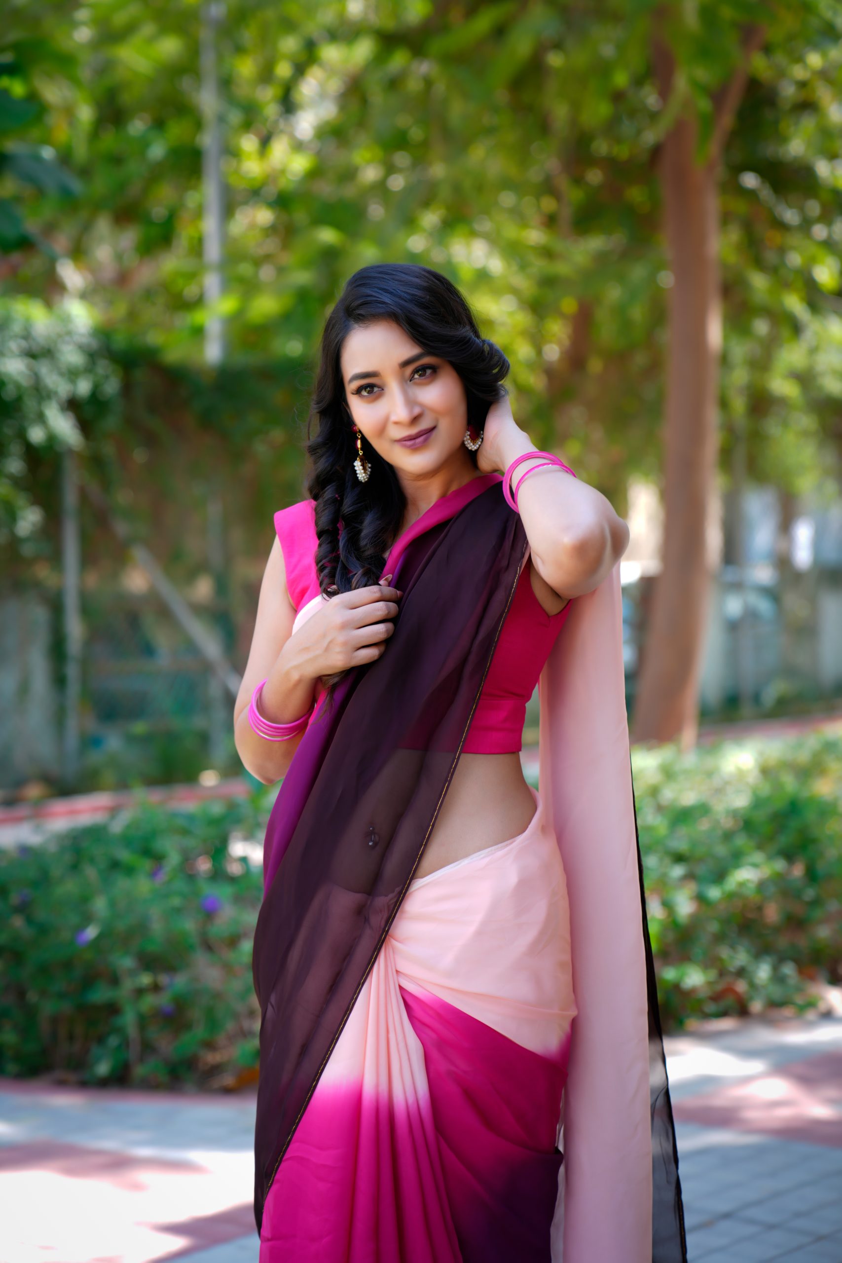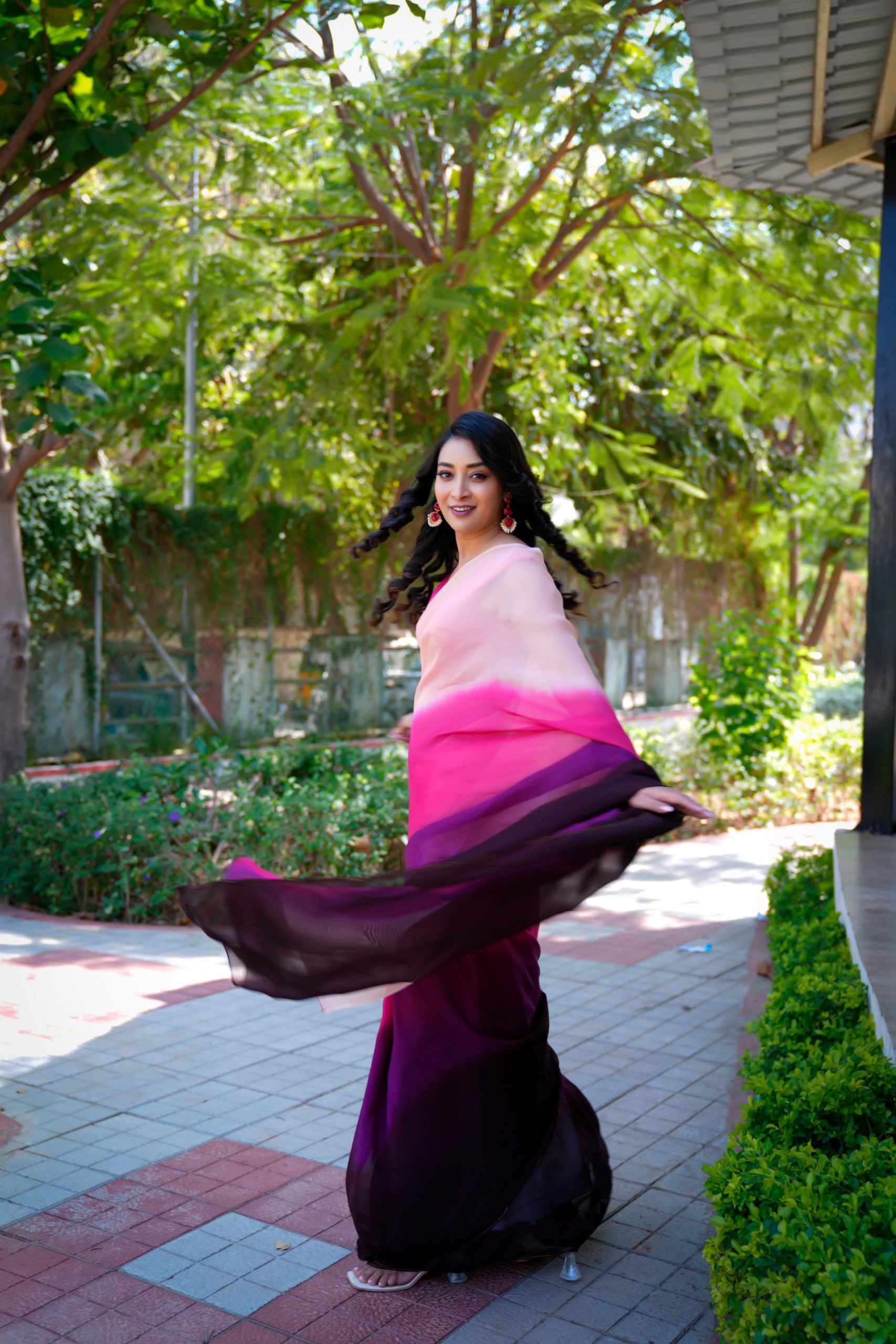 This exquisite pure organza saree showcases a stunning double-shaded dye pattern that beautifully blends deep and soft hues. The fabric’s sheer elegance and light texture add a charming touch, making it perfect for festive occasions, parties, or elegant gatherings — a true statement of refined style.