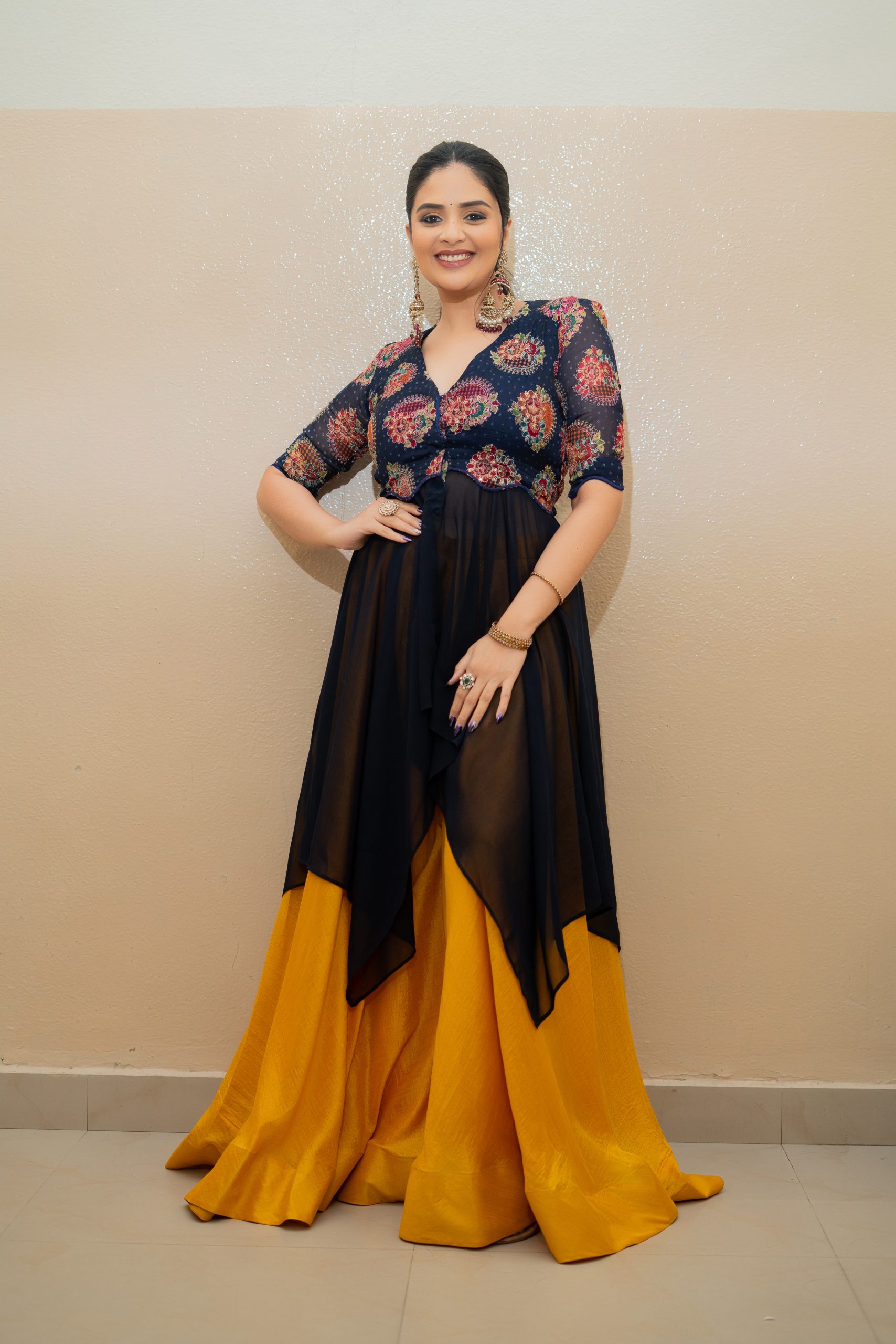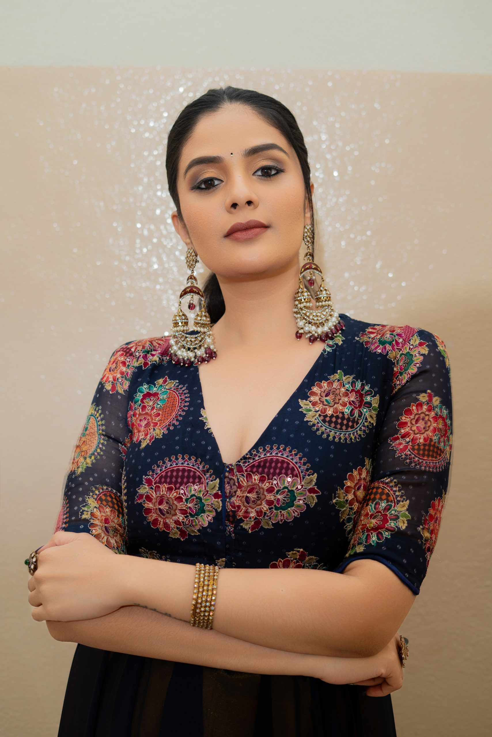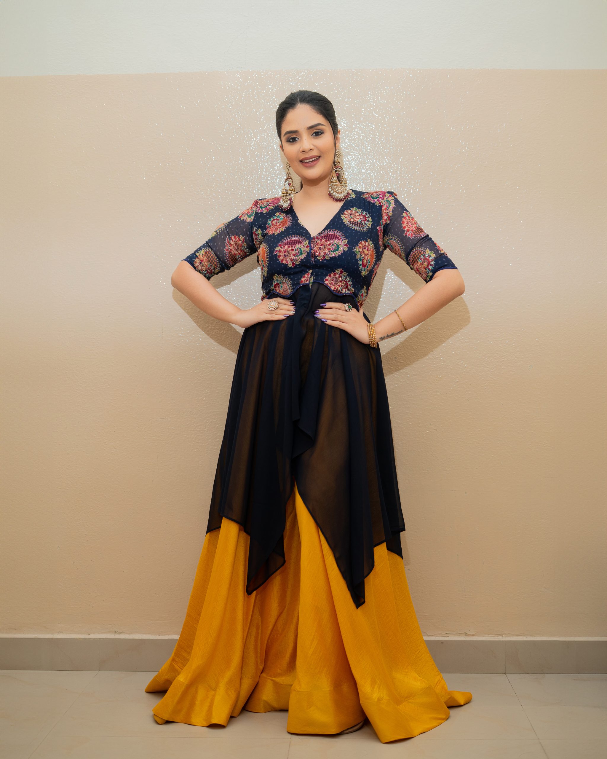 Grace meets style in this stunning ensemble featuring a Lillysilk full-flare palazzo paired with a flowy georgette overlay. The printed yoke adds a pop of artistry, enhanced with a subtle maggam touch for a hint of traditional elegance. Perfect for festive occasions or evening gatherings, this outfit blends modern flair with timeless charm.