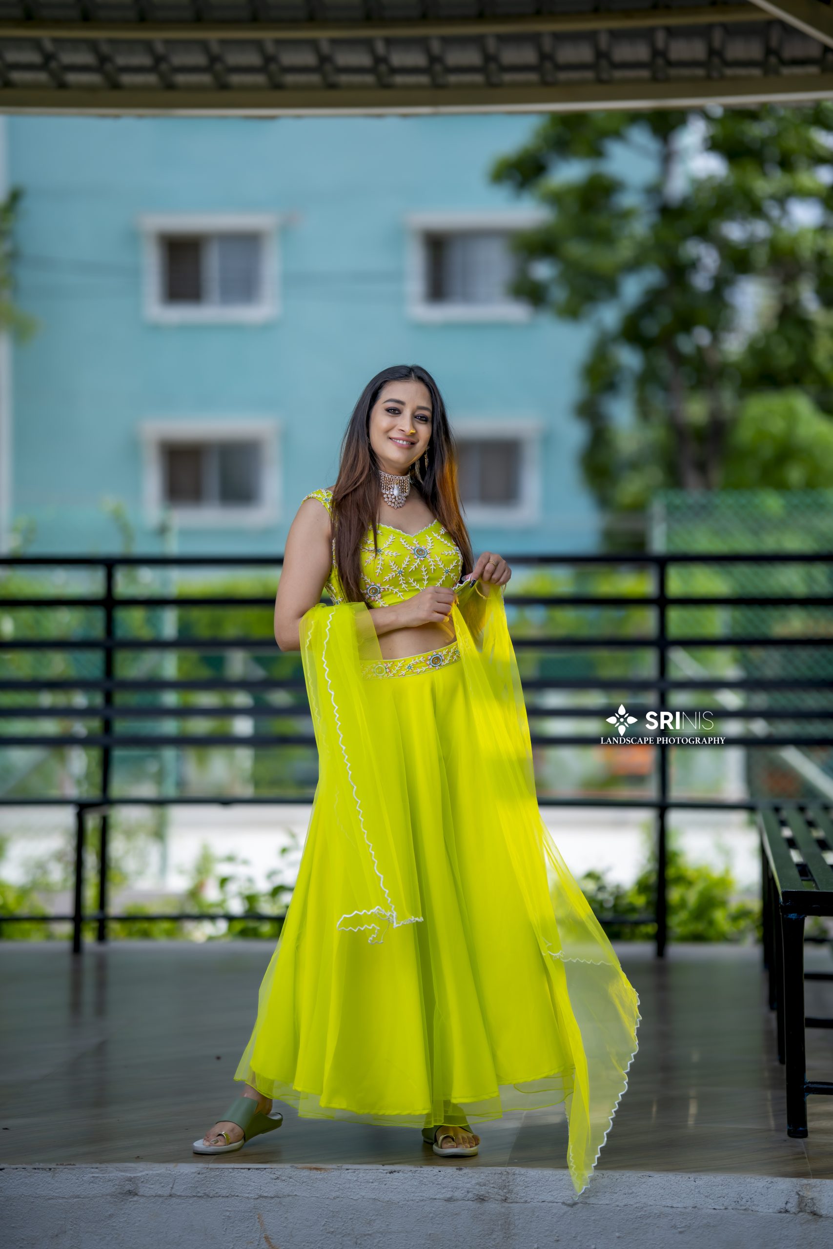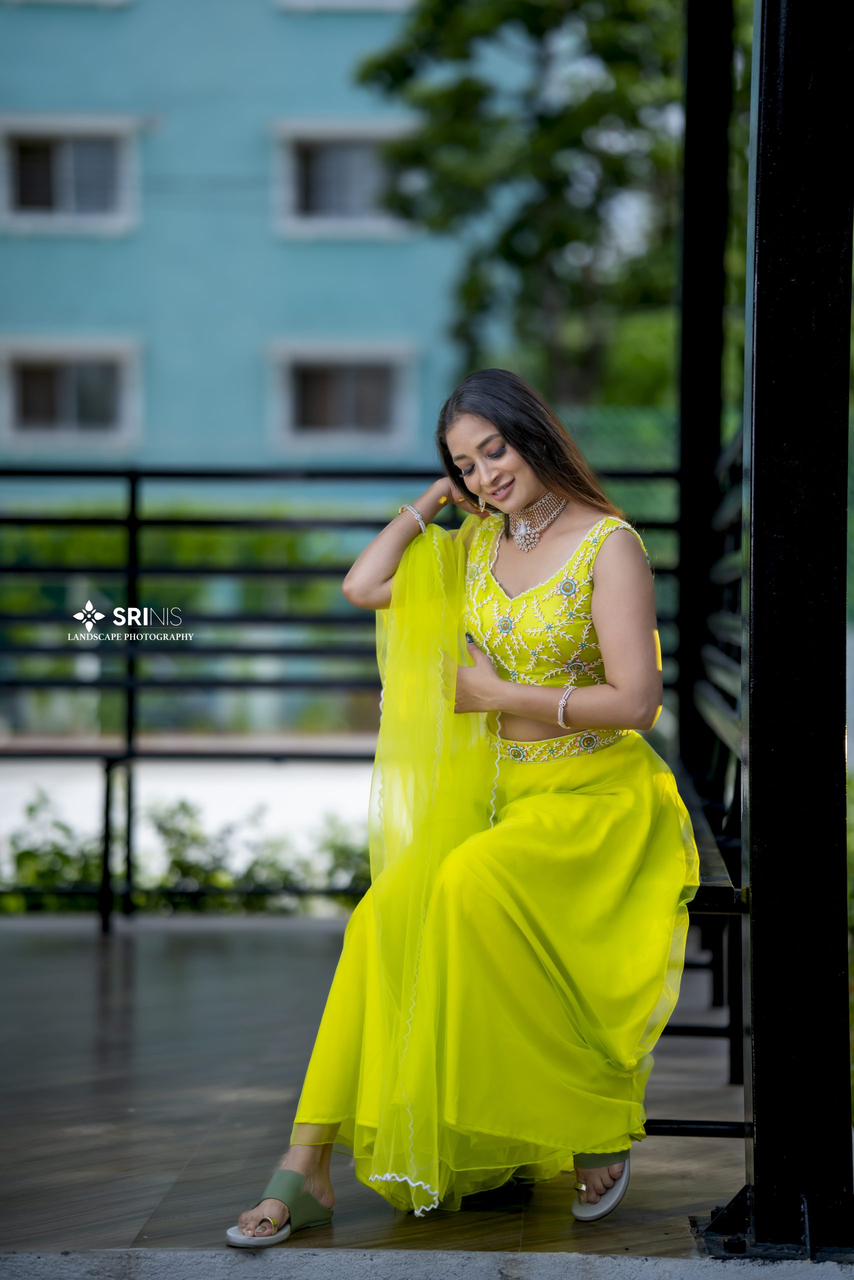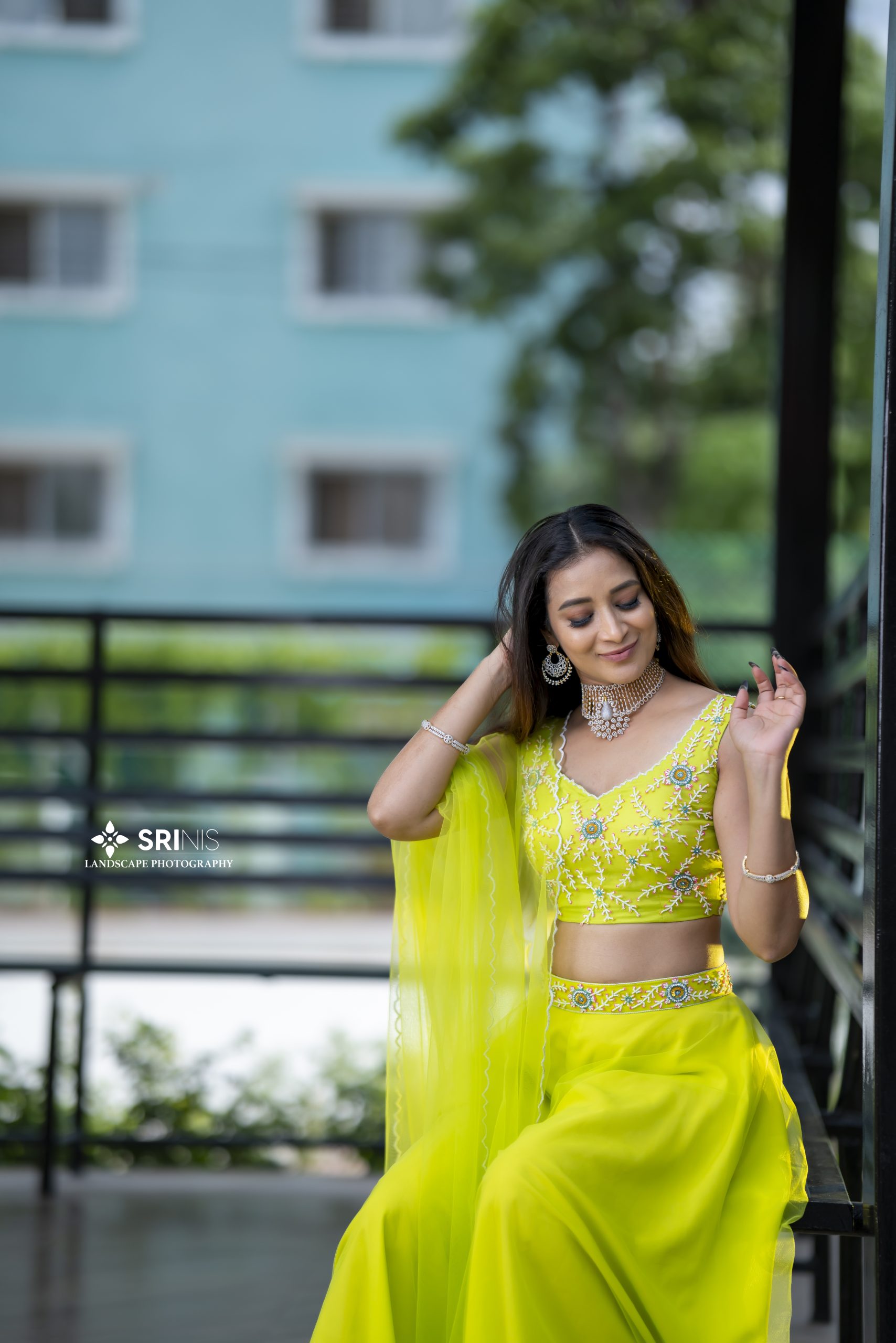 Radiate festive brilliance in this graceful Sunlit Charm Net Lehenga Set. Crafted from soft, flowy net fabric, this ensemble features a beautifully detailed maggam work blouse that adds richness and tradition to the look. The lightweight dupatta complements the vibrant lehenga, creating a perfect balance of elegance and ease. Ideal for haldi functions, festive celebrations, or daytime weddings, this outfit exudes a fresh and radiant charm.