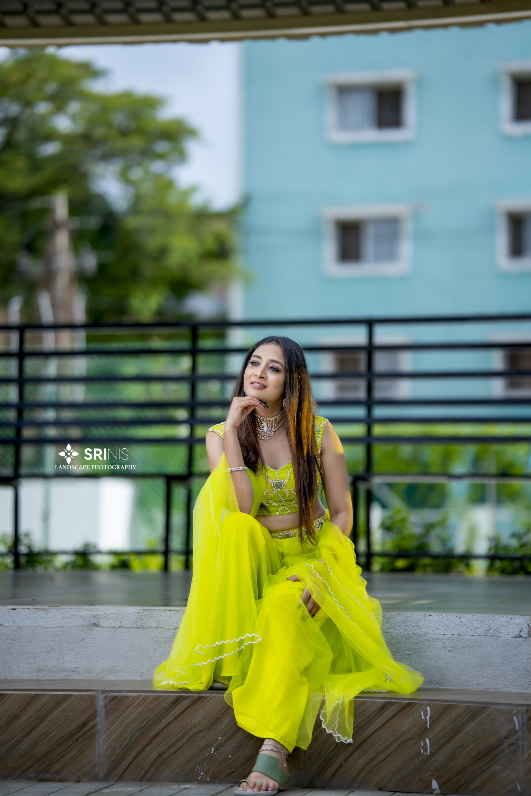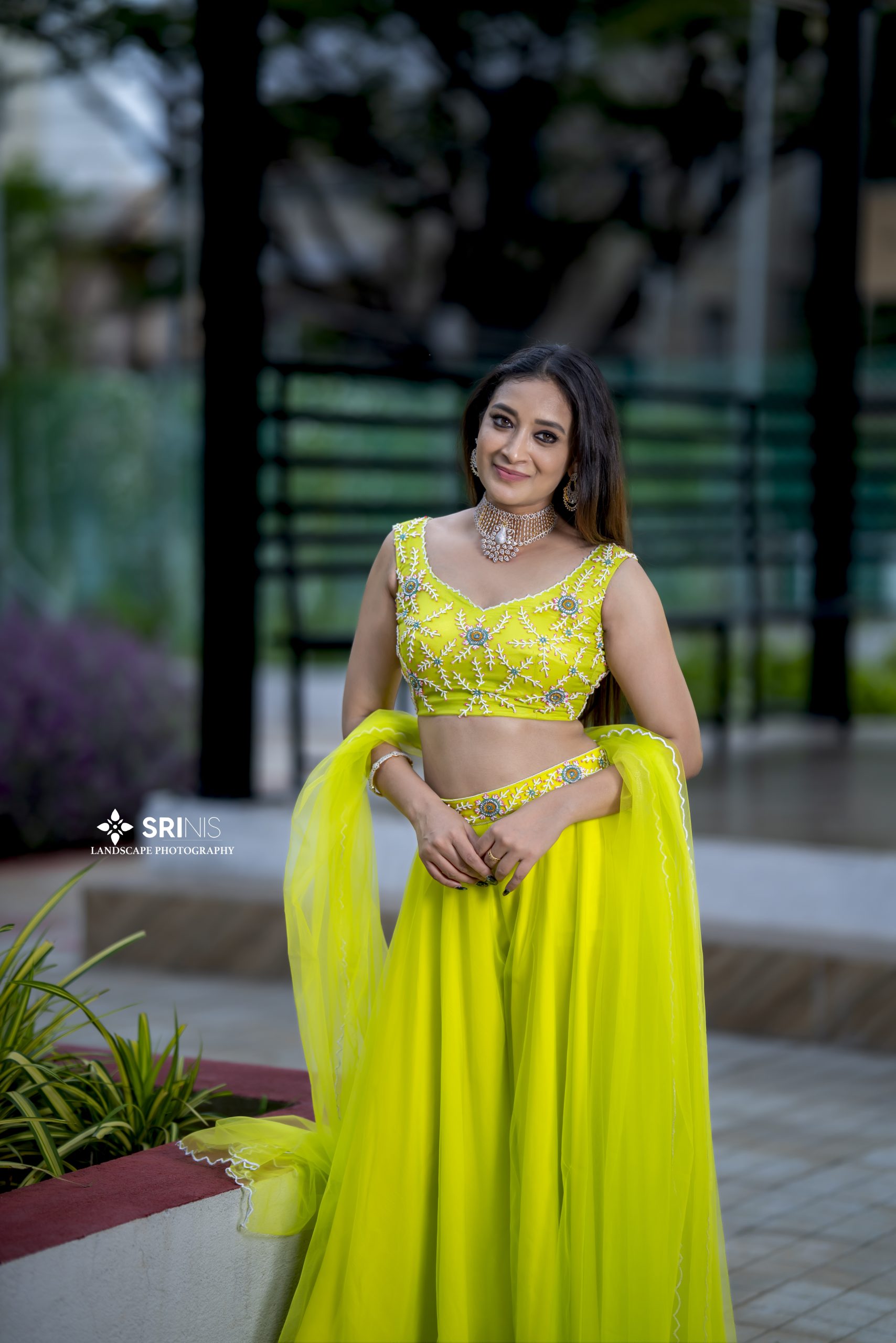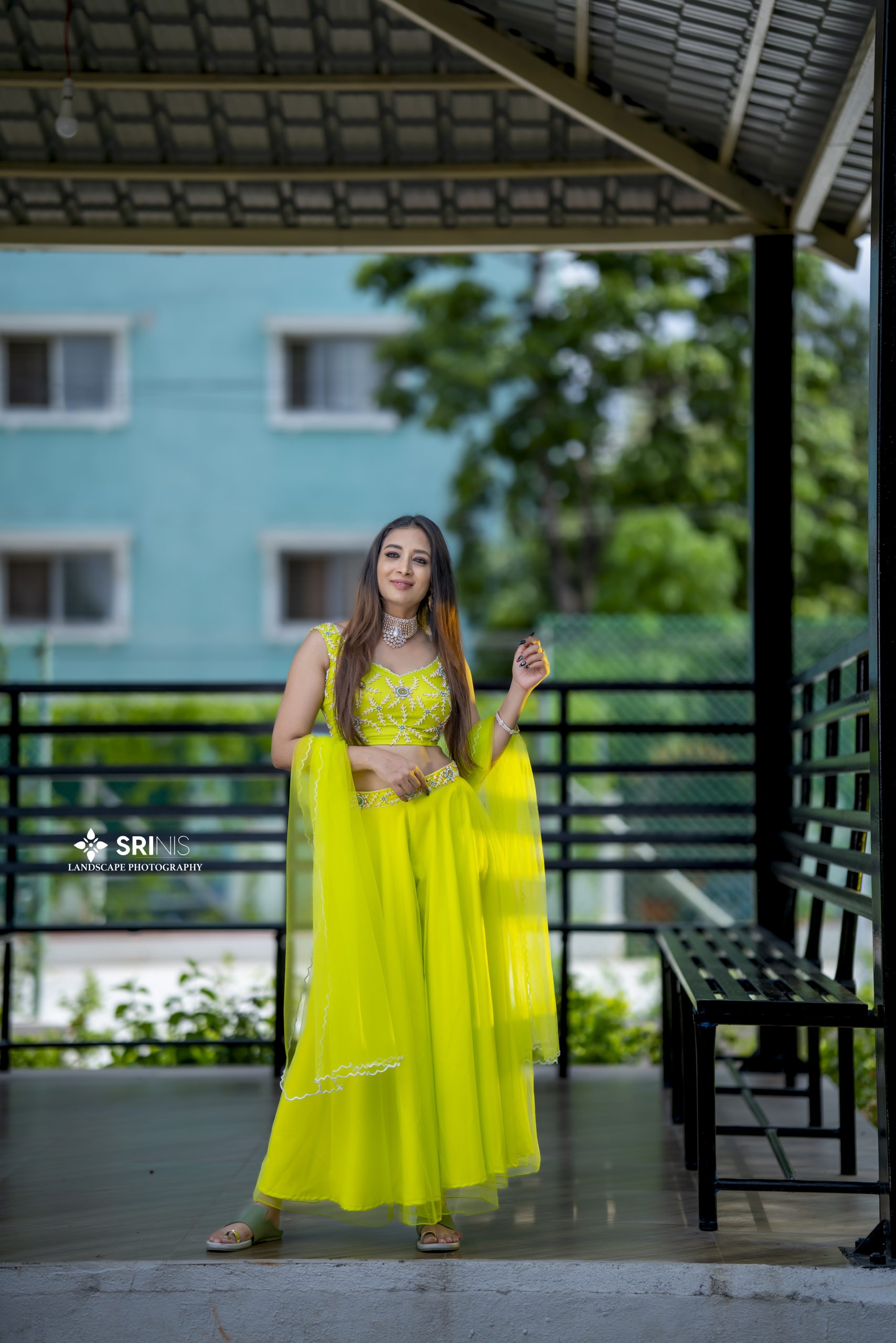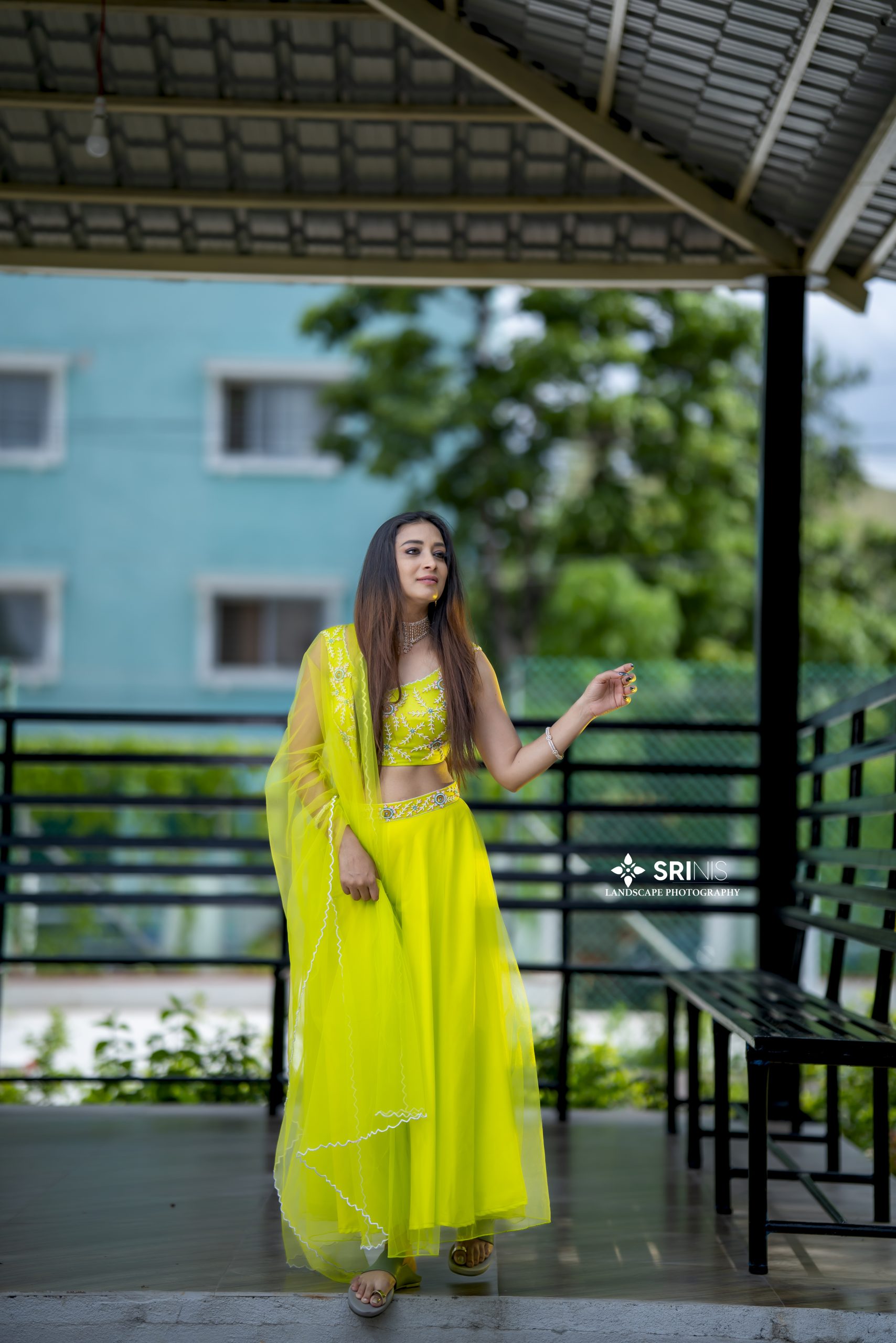 Radiate festive brilliance in this graceful Sunlit Charm Net Lehenga Set. Crafted from soft, flowy net fabric, this ensemble features a beautifully detailed maggam work blouse that adds richness and tradition to the look. The lightweight dupatta complements the vibrant lehenga, creating a perfect balance of elegance and ease. Ideal for haldi functions, festive celebrations, or daytime weddings, this outfit exudes a fresh and radiant charm.